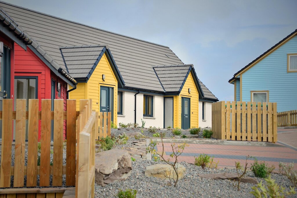 There are Twelve 1-Bedroom 2-Person Flats, Four 2-Bedroom 3-Person Houses, Two 2-Bedroom 4-Person and Two 3-Bedroom 5-Person Houses. All units are timber kit construction with a mixture of external timber cladding and render finish. All properties are designed to be energy efficient with heating supplied via heat pumps.