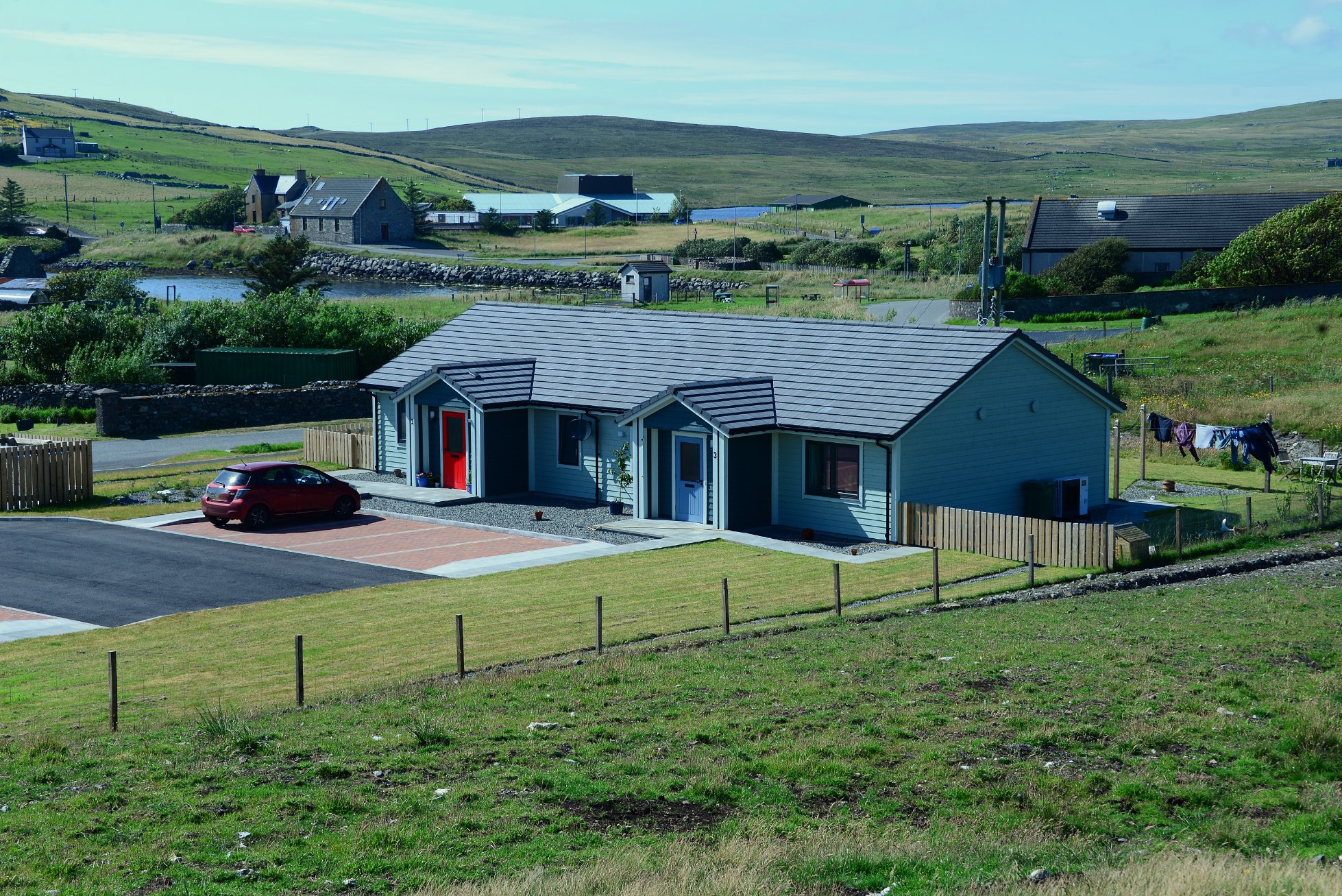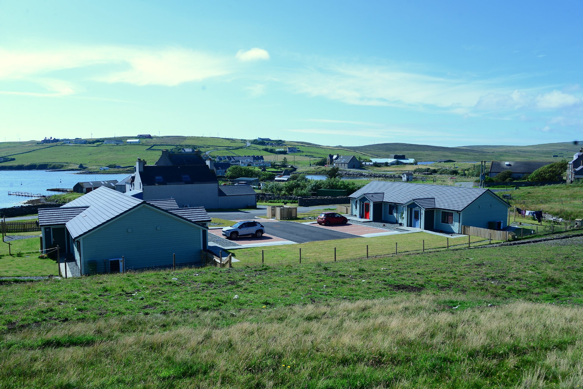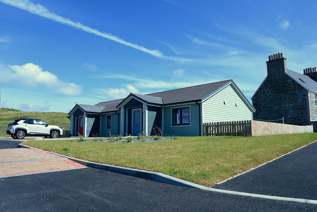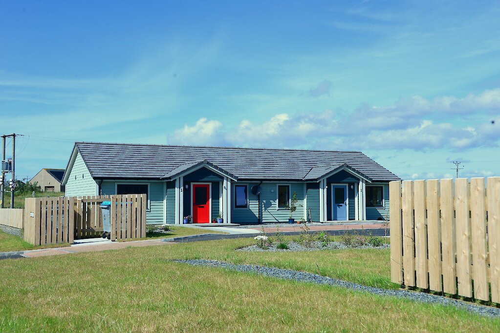 This development provides 4 homes in the centre of Walls and supplements the Associations other housing at Vagaland. They are located 5 minutes from the local shop, bakery, and other services. All properties are timber kit construction with external timber cladding. The heating is supplied via heat pumps and all properties have Mechanical Ventilation with Heat Recovery.