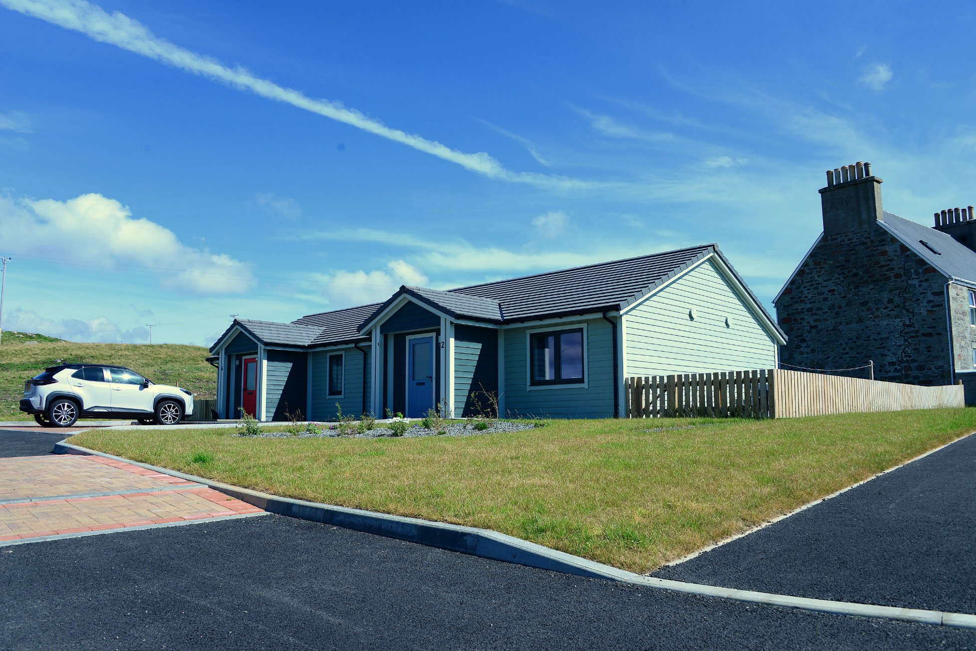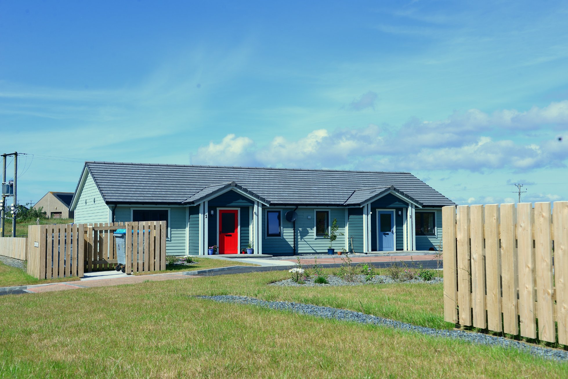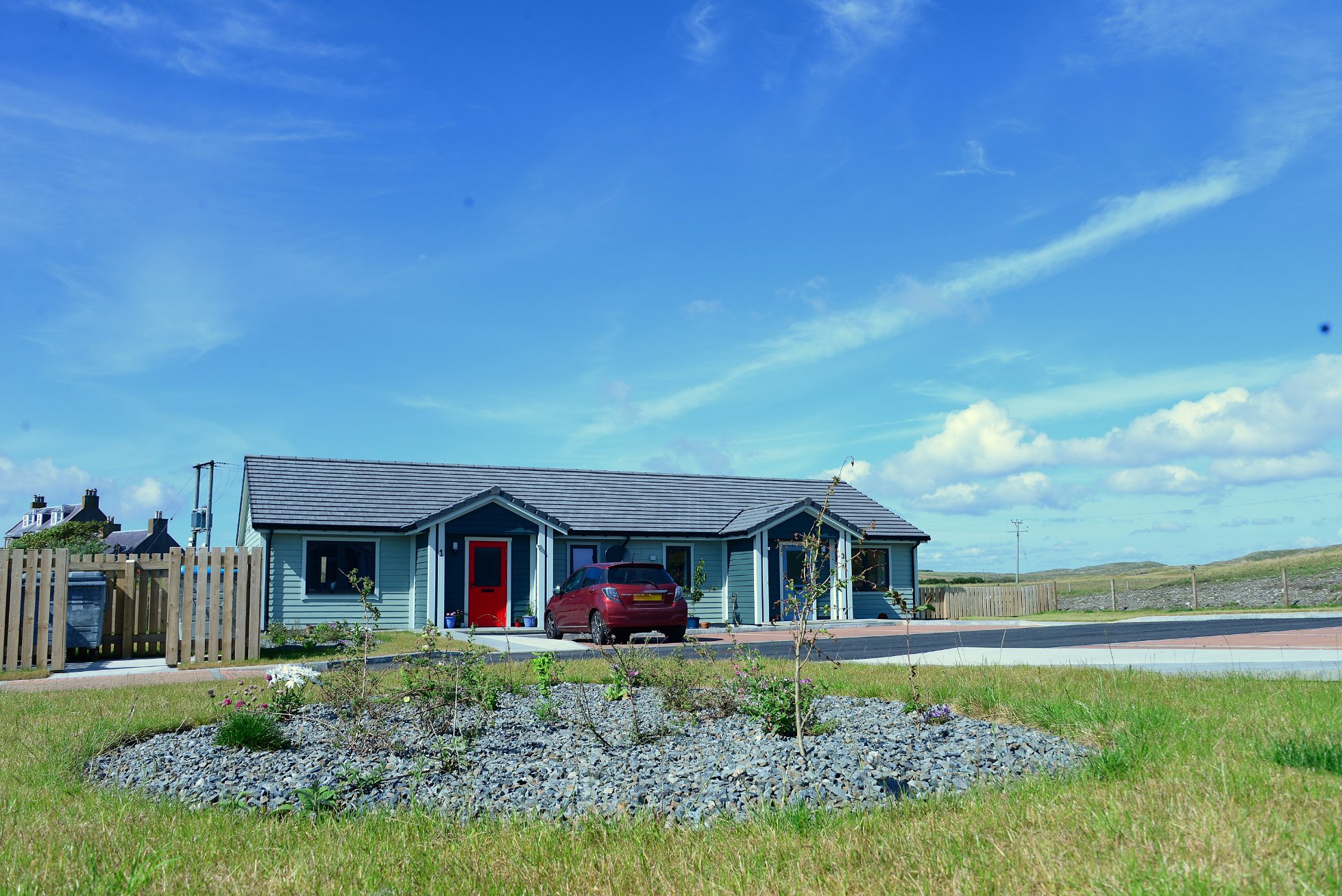 This development provides 4 homes in the centre of Walls and supplements the Associations other housing at Vagaland. They are located 5 minutes from the local shop, bakery, and other services. All properties are timber kit construction with external timber cladding. The heating is supplied via heat pumps and all properties have Mechanical Ventilation with Heat Recovery.